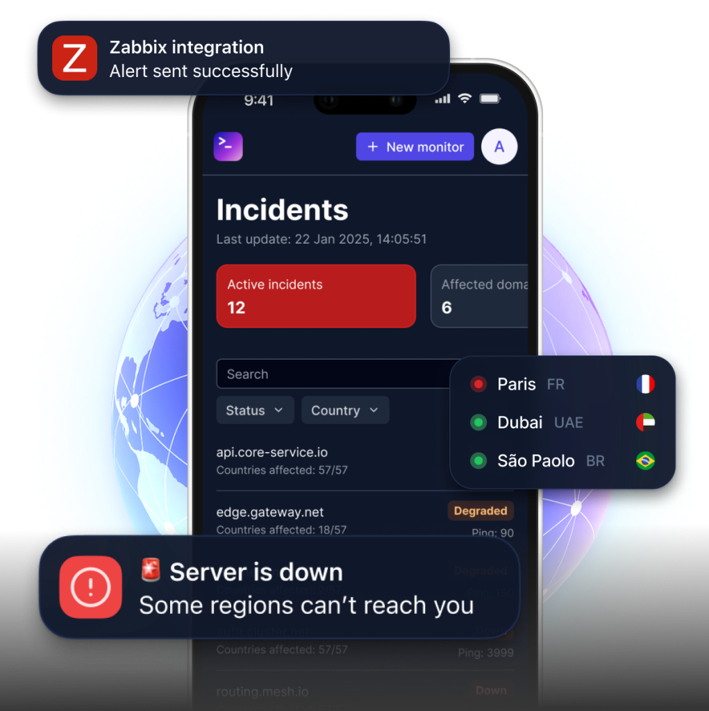 You're responsible for uptime SLAs. Standard monitoring gives you false confidence. CheckMe.dev shows what your users actually experience — by country, by ISP, in real time.