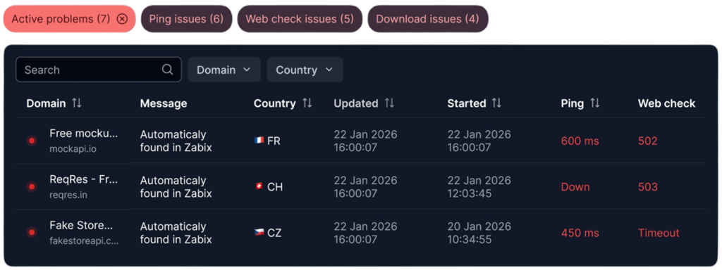 - Availability issues visible only from specific countries or networks